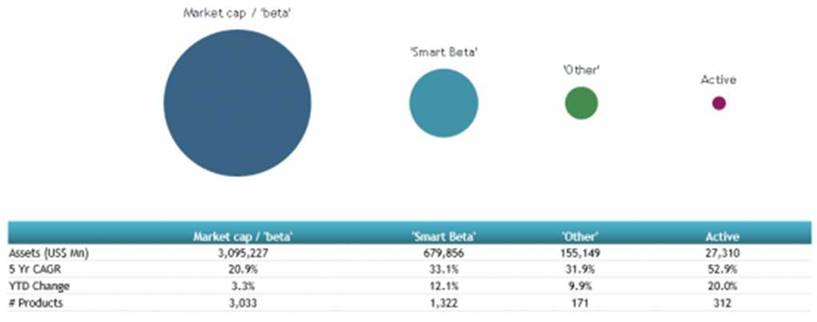 According to research consultancy ETFGI there was $680 billion invested in smart beta exchange-traded products (ETPs) globally by the end of January this year. Although this is only around a fifth of the assets invested in traditional market-cap weighted index trackers, the smart beta category is growing much faster.
