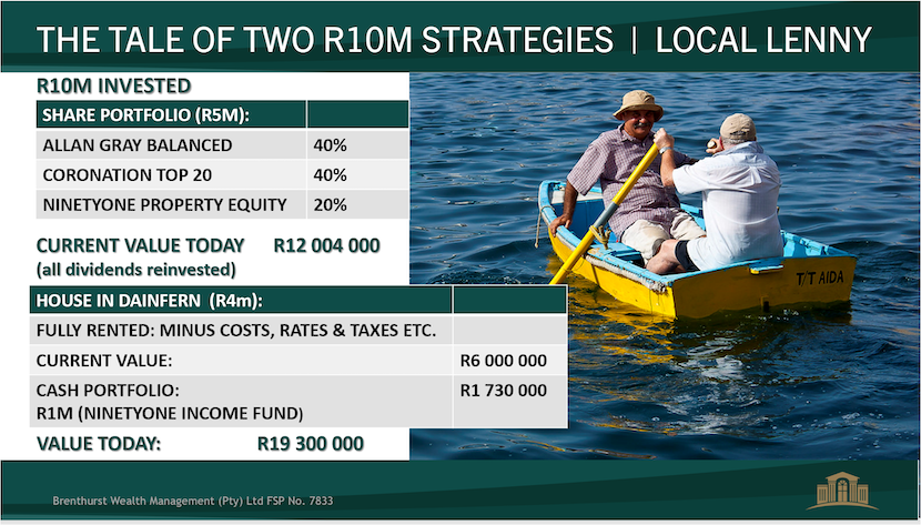 Let’s assume for the sake of illustration twin brothers Lenny and Otto who were fortunate enough to inherit exactly R10m each ten years ago.