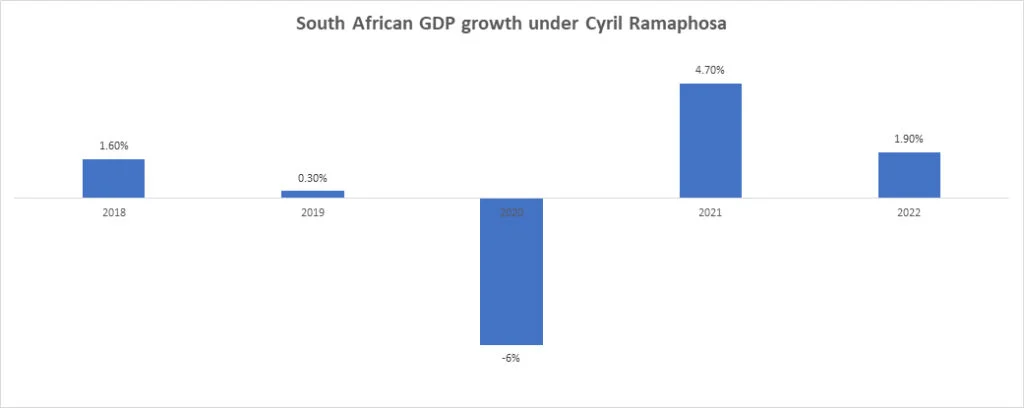 The sections below give an overview of South Africa’s performance under Ramaphosa since he took office in 2018.