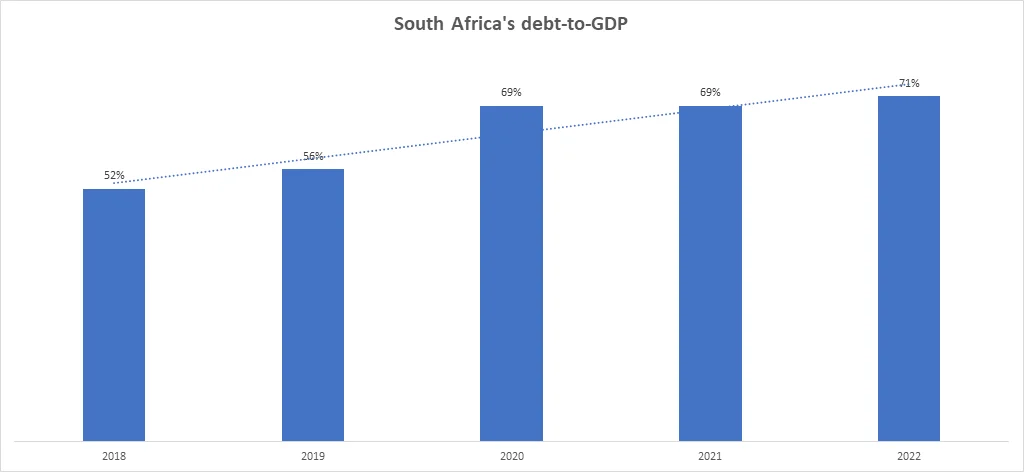 South Africa’s debt increased tremendously during Ramaphosa’s presidency. The government’s debt-to-GDP ratio increased from 52% in 2018 to over 70% in 2023.