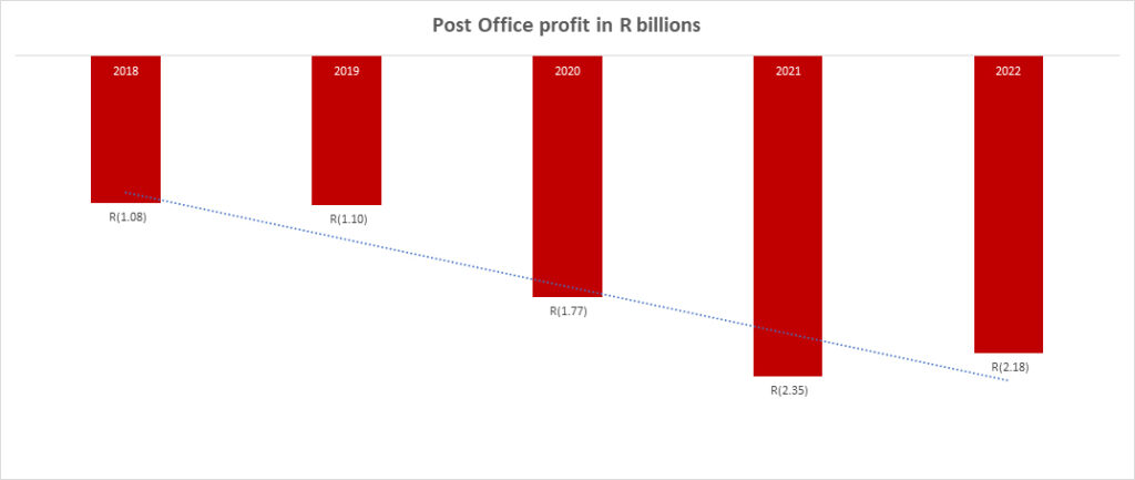 In 2018, the SAPO reported a R1.08 billion loss. This has increased to over R2 billion in 2023. The Post Office has reported total losses of R8.5 billion since Ramaphosa became president.