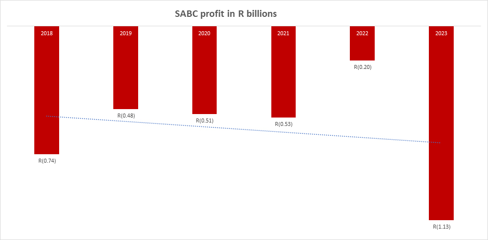 The South African Broadcasting Commission (SABC) has undergone the same trend as other state-owned enterprises, with mounting losses and relying on bailouts to survive.