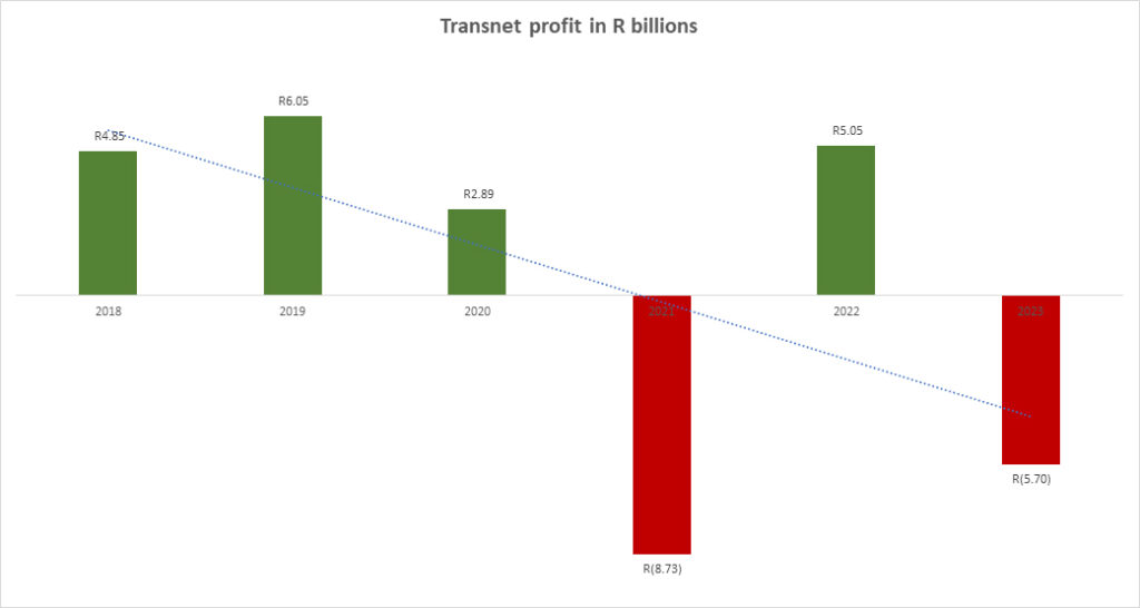 Transnet’s troubles filtered down to its finances. It reported a net loss of R5.7 billion in the 2023 financial year.