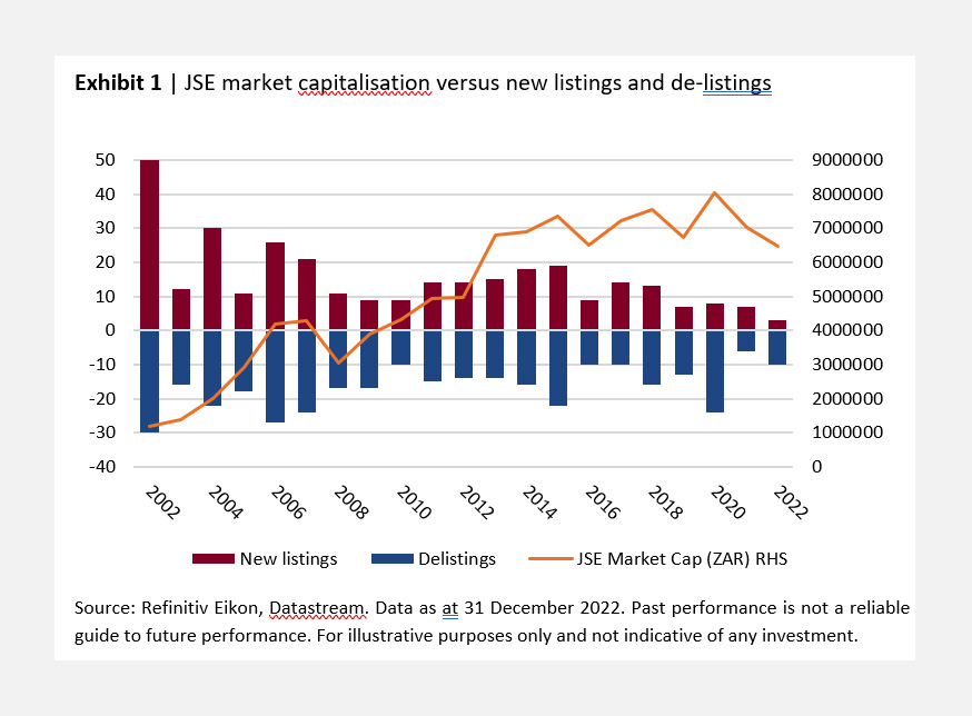 about the number of delistings and lower trading volumes seen on the JSE over the past few years, as it could have a severe impact on South Africa’s investment industry.